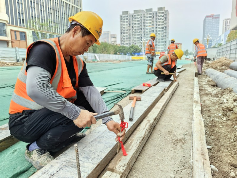 在迎澤大街(西段)地下管網(wǎng)更新改造工程施工現(xiàn)場,三公司全體施工人員爭分奪秒,以熱情與堅守和高溫抗衡,努力確保工程建設有序推進。施工中,測量員彎著腰,左手穩(wěn)穩(wěn)扶住全站儀底座,右手食指輕旋微調(diào)螺旋,瞄準鏡里的十字線與基準點精準重合時,記錄下最精確的坐標,鉛筆在曬得發(fā)燙的紙面上沙沙作響,快速演算著的數(shù)據(jù)是他們最扎實的功底。質(zhì)檢員頂著烈日穿梭在施工現(xiàn)場,他們手持檢測儀器,一絲不茍地檢查著每一道焊縫的質(zhì)量,記錄著每一處管材的規(guī)格參數(shù),烈日當空卻絲毫沒影響他們觀察儀器讀數(shù)的專注,哪怕是0.1毫米的偏差,都逃不過那雙被曬得微紅的眼睛……他們只是施工現(xiàn)場建設者的縮影。在高溫酷暑下,全體施工人員的工裝早已被汗水反復浸透,又在高溫下結成鹽霜,汗水順著安全帽帶不斷滴落,卻絲毫未能動搖他們專注的目光。每一個精準的數(shù)據(jù),每一道完美的焊縫,都是建設者們對承諾的最好詮釋,那些被汗水浸透的背影,在蒸騰的熱浪中勾勒出“市政鐵軍”最動人的剪影。