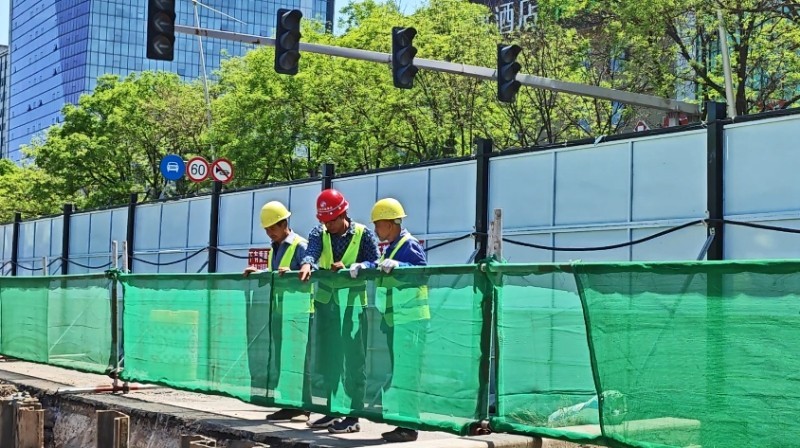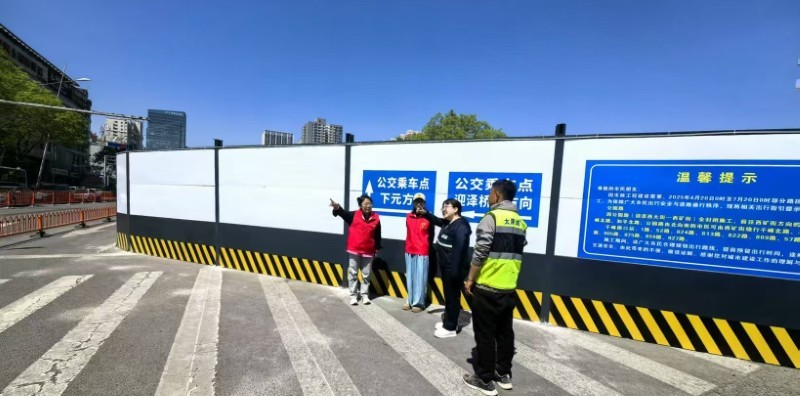 施工以來,集團公司全程安排專人值守地鐵口交通導行,多舉措升級現(xiàn)場安全防護設施——開辟行人安全通道,協(xié)調(diào)劃定“公交專用通道”,在井蓋四周設置緩坡與明黃警示帶,為圍擋加裝柔和燈帶……以細微處的貼心舉措,實現(xiàn)“施工便民不擾民”。