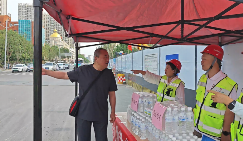 施工過程中,太原市政集團(tuán)作為主要施工單位,積極統(tǒng)籌協(xié)調(diào),主動與園林、電力、自來水、熱力等平行施工單位溝通,在全力推進(jìn)工程進(jìn)度的同時,為各參建單位留好施工作業(yè)面,合理安排平行、交叉作業(yè),確保工程順利推進(jìn),跑出施工“加速度”。為妥善平衡民生保障與工程建設(shè)雙重需求,太原市政集團(tuán)主動擔(dān)當(dāng)、積極作為,主動聯(lián)動交通、城管等部門,采取多項(xiàng)舉措,避免影響周邊居民的正常生活。在施工中遵循“修路不添堵”原則,精心制定交通組織方案,設(shè)置應(yīng)急通道、便民通道和低噪音設(shè)備,并安排交通協(xié)管員在地鐵口等關(guān)鍵部位現(xiàn)場指揮、引導(dǎo)行人,為市民出行提供便利條件,將“讓市民少繞一米路,少踩一個水坑”融入深夜巡查便道安全的腳步,化作施工與民生和諧共生的溫暖注腳;實(shí)施“半幅施工+分段施工+動態(tài)導(dǎo)改”策略,與交警部門合作,優(yōu)化交通信號燈配時,有效緩解施工對市民出行的影響;中高考期間,積極開展“為夢護(hù)航 愛心助考”志愿服務(wù)活動,全線工地按下“靜音鍵”,在關(guān)鍵路口設(shè)立助考點(diǎn),配備礦泉水、防暑降溫藥品等,并為考生開放綠色通道,以實(shí)際行動助力中高考;在施工現(xiàn)場設(shè)置安全警示標(biāo)志和施工公告牌,及時告知市民施工進(jìn)展和注意事項(xiàng),增強(qiáng)市民對施工的理解和支持;組織施工人員進(jìn)行城市家具的及時進(jìn)場和質(zhì)量檢驗(yàn)工作,在全線開展城市家具安裝作業(yè),將一批兼具現(xiàn)代風(fēng)格與太原特色的公交站臺、休閑座椅、分類垃圾箱等設(shè)施安裝到位,這些融合功能與美學(xué)的城市家具,已成為迎澤大街沿線的新亮點(diǎn),不僅提升了城市空間的品質(zhì),更展現(xiàn)出太原深厚的人文關(guān)懷與現(xiàn)代城市風(fēng)貌。全體施工人員以高度的責(zé)任感和使命感,將品質(zhì)與關(guān)懷融入到每一個細(xì)節(jié)中,用實(shí)際行動詮釋了“以人為本,和諧共建”的施工理念。