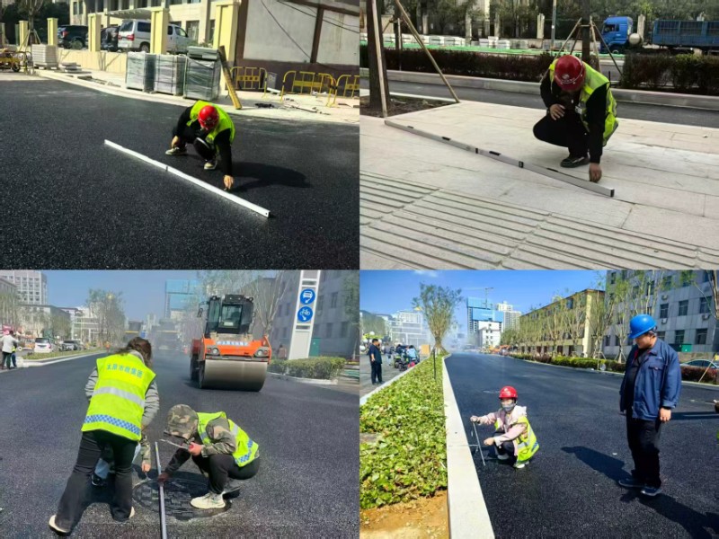 理論與實(shí)踐緊密結(jié)合,方能彰顯力量。各在建項(xiàng)目部積極響應(yīng),組建由項(xiàng)目經(jīng)理掛帥,工長(zhǎng)、質(zhì)檢員協(xié)同作戰(zhàn)的質(zhì)量檢查小組。他們攜帶測(cè)溫儀、塞尺、鋼直尺等專(zhuān)業(yè)工具,深入施工現(xiàn)場(chǎng),對(duì)道路面層與工程材料展開(kāi)“地毯式”排查,從路面平整度到材料規(guī)格,不放過(guò)任何細(xì)微之處,將質(zhì)量管控觸角延伸至施工現(xiàn)場(chǎng)的每一角落,用實(shí)際行動(dòng)守護(hù)工程質(zhì)量的“生命線”。